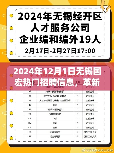 隨著科技的飛速發(fā)展,我們生活的每一個(gè)角落都在悄然改變,在這個(gè)變革的浪潮中,無錫國宏以其前瞻的視角和創(chuàng)新的步伐,引領(lǐng)著科技招聘的新紀(jì)元,本文將聚焦于國宏即將在2024年12月1日發(fā)布的最新招聘信息及其熱門產(chǎn)品,為您深度解析其最前沿的功能亮點(diǎn)和使用體驗(yàn),展現(xiàn)科技如何改變生活,激發(fā)每一位科技愛好者的無限興趣。