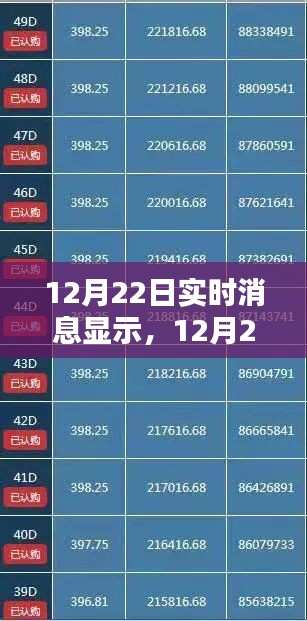 摘要:最新實(shí)時(shí)消息速遞,掌握最新資訊,洞悉世界動(dòng)態(tài)。在12月22日,獲取最新的實(shí)時(shí)消息,了解全球發(fā)生的大事。通過(guò)實(shí)時(shí)消息渠道,輕松獲取第一手資訊,緊跟時(shí)代步伐。