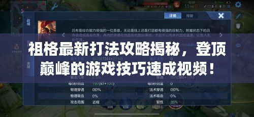 為了更直觀地了解祖格最新打法,觀看攻略視頻是一個(gè)不錯(cuò)的選擇,現(xiàn)在網(wǎng)絡(luò)上有很多游戲達(dá)人會分享他們的游戲經(jīng)驗(yàn),包括最新的打法、英雄出裝、技能加點(diǎn)等,通過搜索“祖格最新打法攻略視頻”,你可以找到這些視頻,以便更好地掌握游戲技巧。