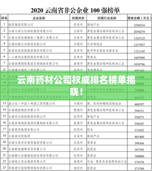 云南,這片充滿神奇與活力的土地,不僅擁有得天獨厚的自然資源和美麗的風(fēng)景名勝,更是中醫(yī)藥材的寶庫,云南的藥材公司在國內(nèi)外享有很高的聲譽,它們以其優(yōu)質(zhì)的產(chǎn)品、專業(yè)的服務(wù)和良好的市場口碑贏得了廣大客戶的信賴,我們將為您揭曉云南藥材公司的排名。