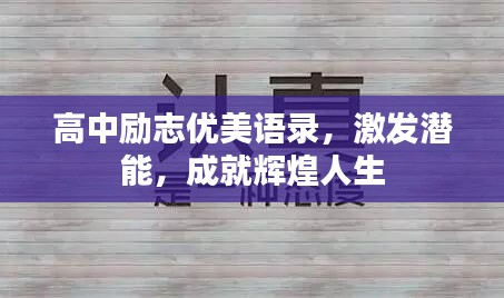 高中時代是青春的年華,充滿了對未來的憧憬和追求,在這個重要的階段,勵志語錄可以給予我們前進(jìn)的動力和勇氣,以下是關(guān)于高中勵志的優(yōu)美語錄,希望能激勵我們在成長的道路上勇往直前。