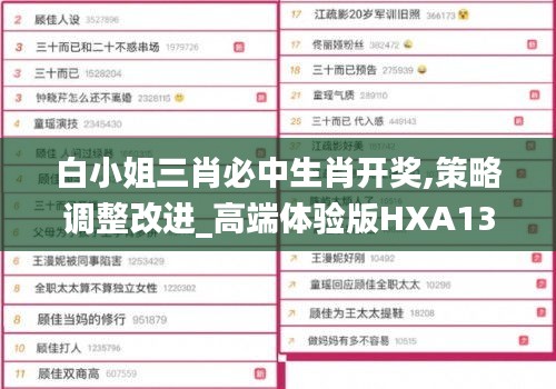 在眾多彩票游戲中,生肖開獎類游戲因其簡單易懂、趣味性強而深受彩民喜愛。其中,白小姐三肖必中生肖開獎更是憑借其高命中率和豐厚獎金吸引了大量彩民關(guān)注。本文將為您詳細介紹白小姐三肖必中生肖開獎的策略調(diào)整改進,幫助您提高中獎概率。