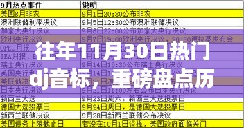親愛(ài)的小紅書(shū)伙伴們,今天我們來(lái)聊聊一個(gè)大家都非常感興趣的話題——?dú)v年11月30日的熱門(mén)DJ音標(biāo),隨著音樂(lè)節(jié)奏的跳動(dòng),我們一起回顧那些讓人熱血沸騰的DJ神曲,感受音樂(lè)帶來(lái)的激情與活力!